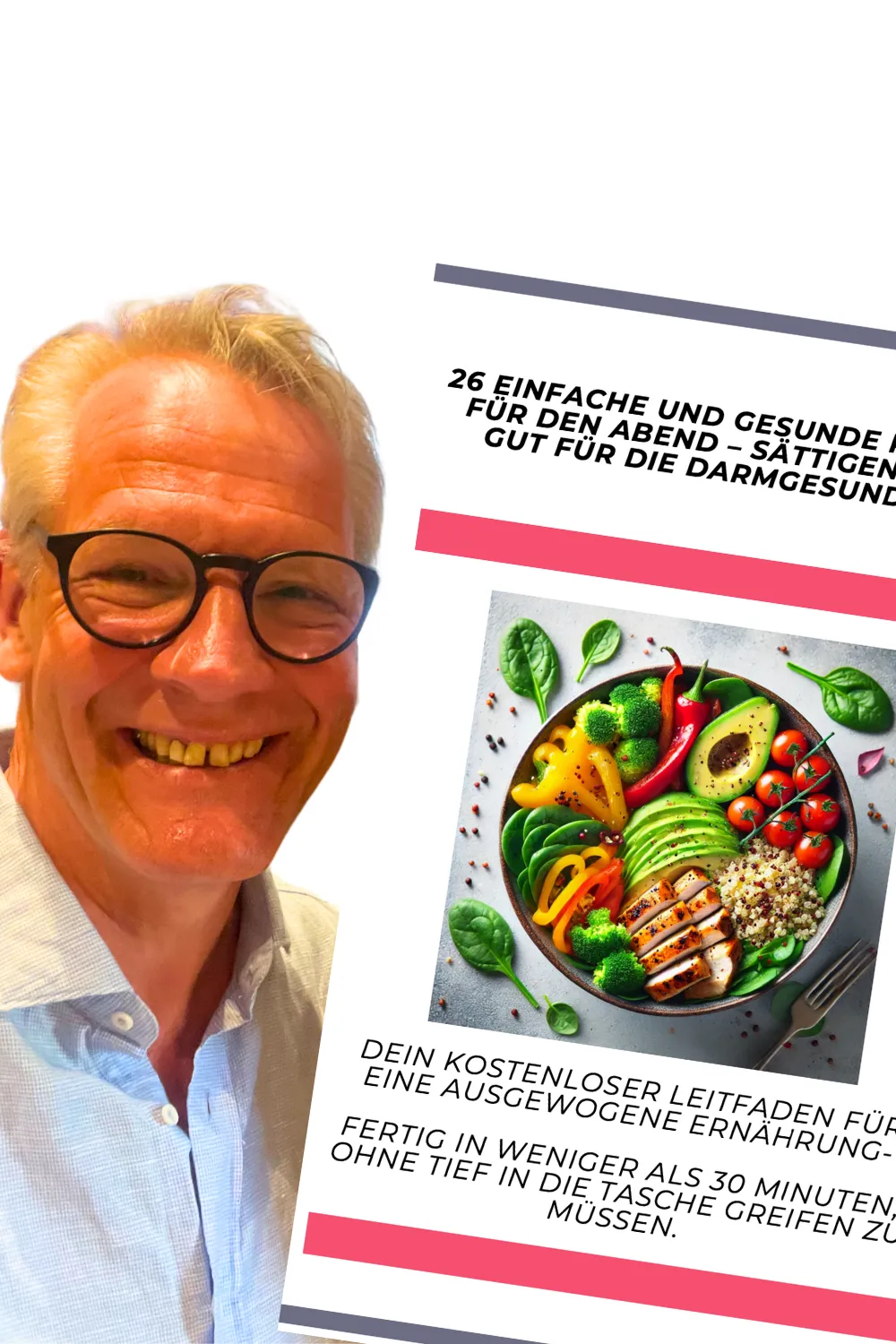 Hol dir jetzt meinen kostenlosen Rezept-Plan: 26 einfache & leckere Abendrezepte – die satt machen, deinen Darm unterstützen und helfen, Muskelmasse zu erhalten.